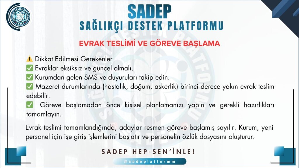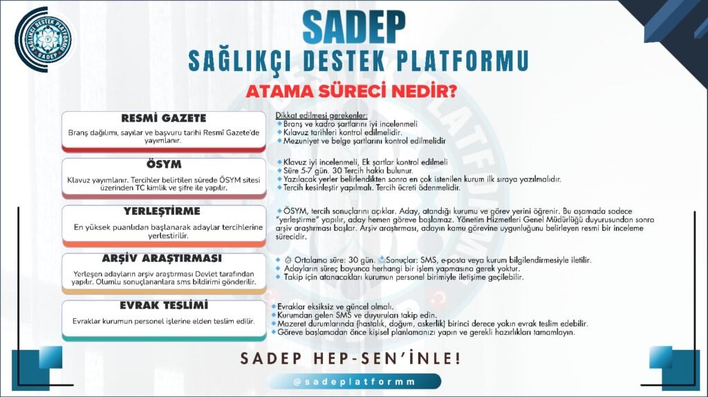 Atama Süreci Nedir? Sağlık Bakanlığı atama süreci, adayların uzun emekler sonunda kamu görevine ilk adımlarını attıkları önemli bir dönemi kapsar. Bu süreçte hangi adımların ne zaman gerçekleşeceğini bilmek, hem planlama yapmayı hem de gereksiz stres yaşamadan ilerlemeyi kolaylaştırır. Atama süreci, Resmî Gazete’de duyurulan ilanla başlar ve göreve başlamaya kadar uzanan birkaç aşamadan oluşur. SADEP olarak […]