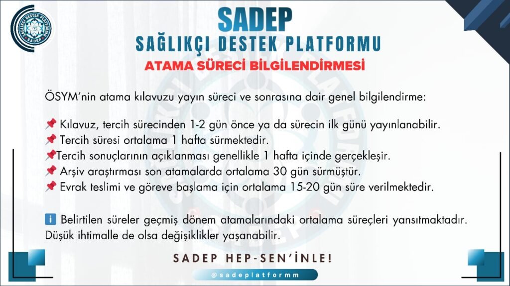 SADEP – Sağlıkçı Destek Platformu   SADEP, sağlık çalışanlarının tercih sürecinde ihtiyaç duyduğu tüm verileri tek bir yerde toplayan ücretsiz bir platformdur. Amacımız; sizlere en güncel ve doğru bilgileri sunarak, tercihlerinizi bilinçli, doğru ve stressiz bir şekilde yapmanızı sağlamaktır.   —   ATAMAREHBERI.COM ile Tercihleriniz Daha Kolay   Sizler için özel olarak hazırlanan ATAMAREHBERI.COM web […]